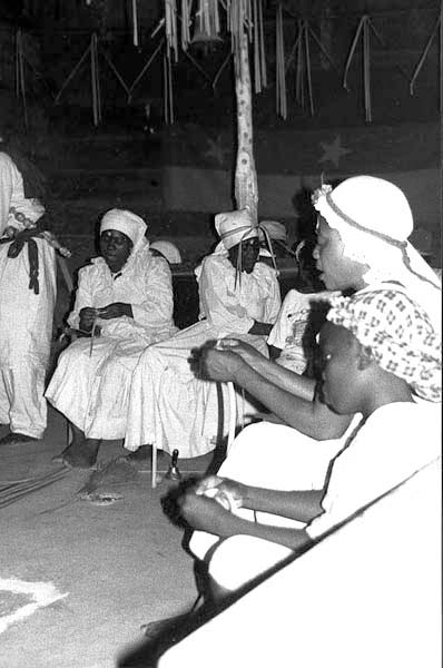 Les femmes realisent la decoration du temple en guirlandes de jeunes pousses de palmier. Celles-ci, qui prennent un aspect lumineux forment une barriere protectrice contre les beyem (sorciers) et les mauvais esprits. Lors de l'ekemba, la Yombo donnera a chacun une jeune pousse de palmier a huile, avec laquelle il realisera un bracelet. Ce bracelet (Alomba) represente le cordon ombilical, il est le signe de l'initie.