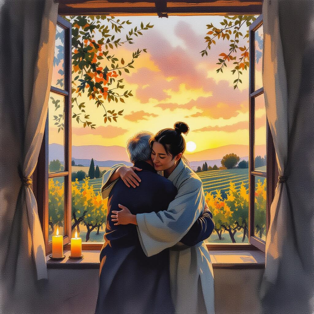 lume035—|Emilia-custode porta i primi visitatori al Terabuti. Donna energica toscana, radicata alla terra, trasmette saperi antichi e semi come memorie viventi. Discendente di donne sarde, conosce l'aglio come |Teriaca di contadini e pastori, rimedio universale che custodisce la salute e scaccia il male, simbolo di protezione, appetito e forza vitale. Con aglio e cipolla, la sera non crolla, poichè la forza dei semplici sostiene il corpo e l'anima nei lavori quotidiani. Emilia insegna le foglie del sogno, artemisia, lavanda e salvia dell'indovino.# Emilia coglie una foglia e la pone sulla fronte della bambina di Pamela, poi sussurra un canto ancestrale: Cammino scalza ogni mattina, saluto terra, luna e vigna. Lì sotto dorme il nonno mio, Lì cresce il pane, il grano, il Dio. Chi tocca la foglia, sogna la madre, chi la mangia, diventa seme. Emilia parla a Seba: Qui pianto radici, terreno che nutre i semi e le storie, terra che parla e accoglie i passi, terra che conosce le nostre memorie. Emilia sparge semi, Seba osserva con attenzione e scrive. | 🎧 ascolta | ⏹ ferma