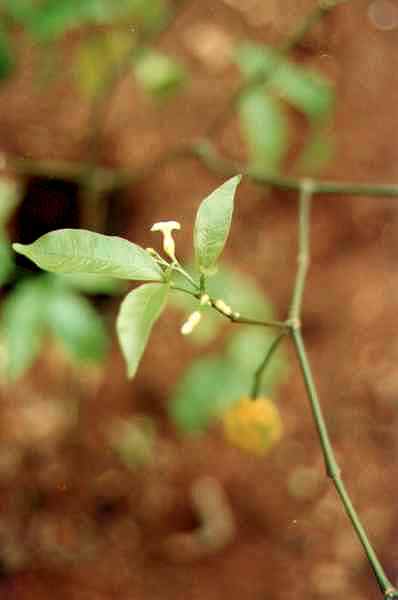 sur la même branche, les divers stades: bouton, fleur, fruit