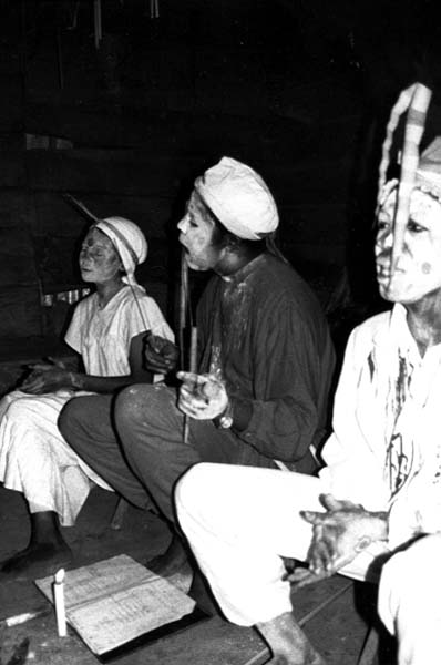 Il joue seul pour la distribution de l'iboga, puis à des moments précis du rituel.