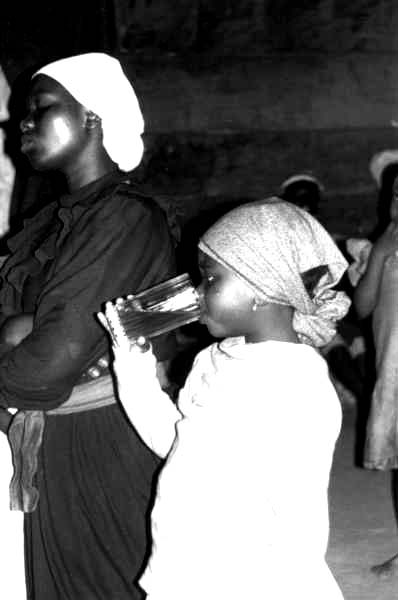 Une petite fille prend la "boisson d'Eboga", le liquide aide à faire passer la "plante amère".